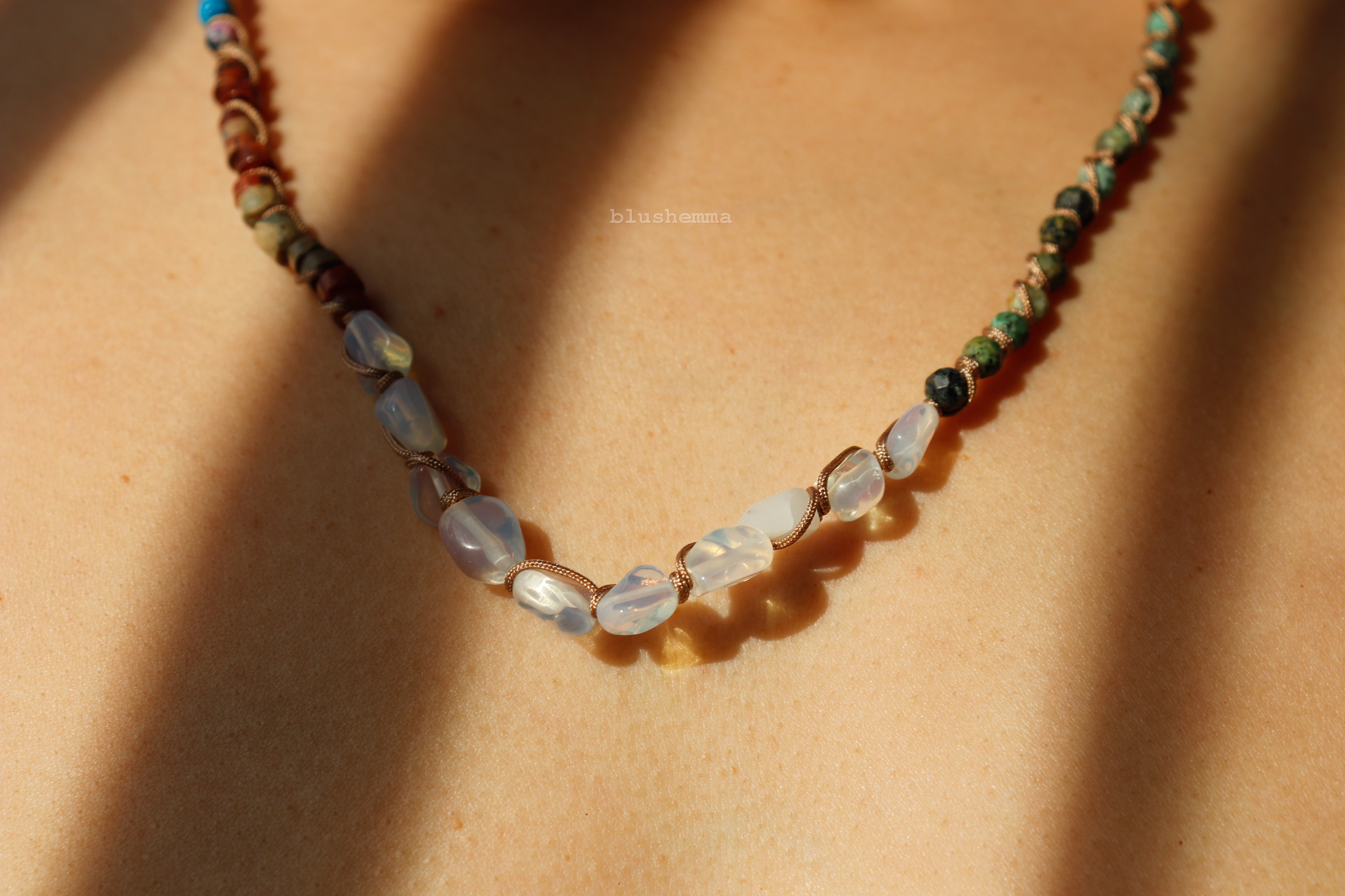 Blue Teal Colorful Mixed Gem Beaded Necklace